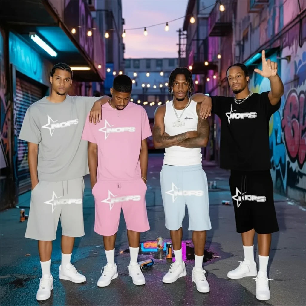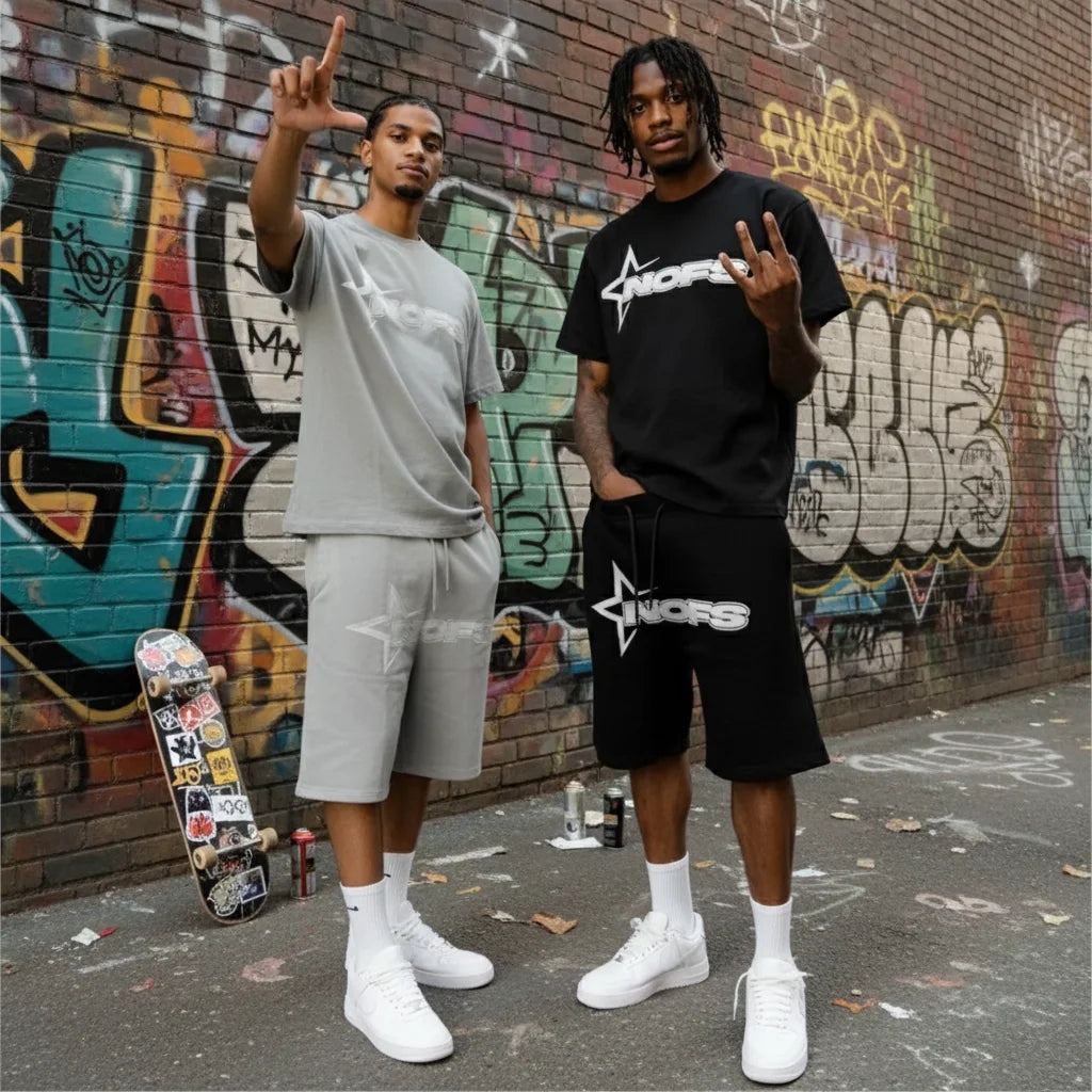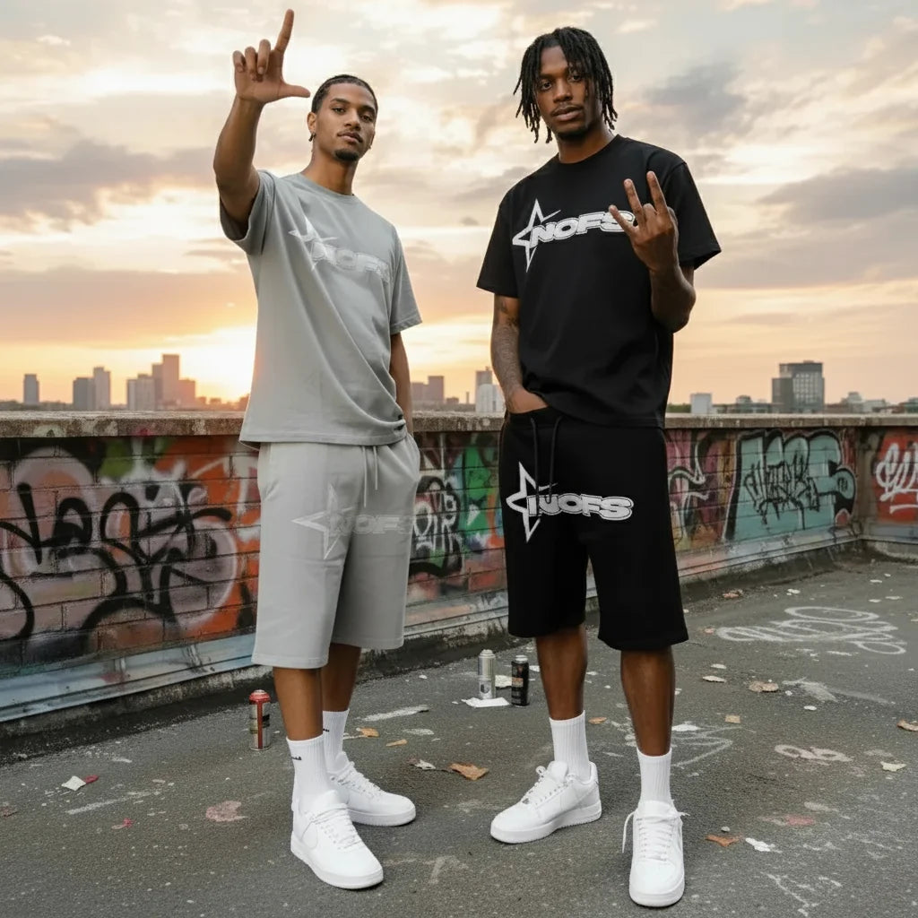 Ce set est ta toile. Porte-le ensemble pour un look iconique, ou mixe le t-shirt avec un jean baggy, le short avec un crop top. C'est l'essence même de l'ère Y2K : la liberté de créer ton propre drip, peu importe la scène.